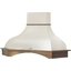 Еще один универсальный цвет — белый, он особенно хорошо подходит для небольших кухонь, так как зрительно способен расширить пространство. На белом фона меньше заметны капли воды и даже частицы жира. В классическом или античном белом выполняются купольные и каминные вытяжки, угловые и встраиваемые модели. Светлые кремовые тона, оттенок слоновой кости — наиболее распространенный вариант для больших вытяжек с окантовкой из натурального дерева.