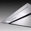 Воздух всасывается по периметру вытяжки через узкие щели. Он собирается в потоки, которые направляются прямо к фильтрам внутри, не рассеивается на кухне. Благодаря этой технологией вытяжку можно сделать компактнее и энергоэффективнее.
