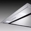 Воздух всасывается по периметру вытяжки через узкие щели. Он собирается в потоки, которые направляются прямо к фильтрам внутри, не рассеивается на кухне. Благодаря этой технологией вытяжку можно сделать компактнее и энергоэффективнее.