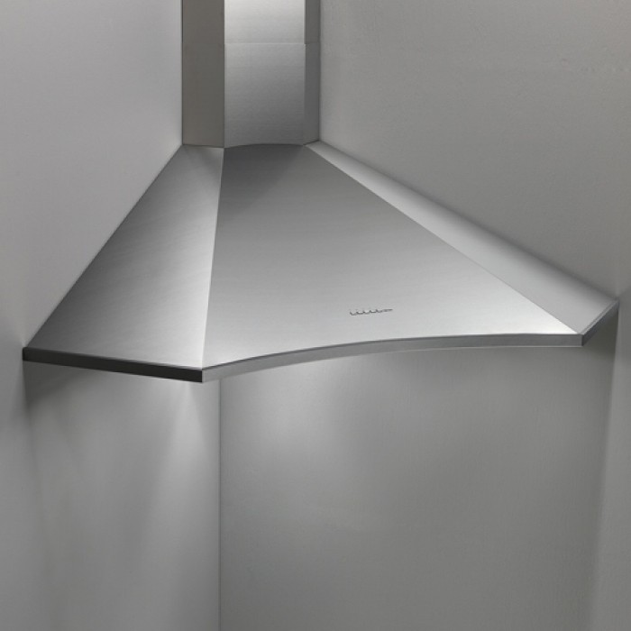Угловые вытяжки — разновидность купольных. В соответствии со своим названием эти устройства крепятся над угловыми варочными поверхностями, удачно занимая свободное место в углу помещения.