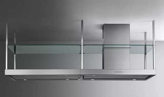 Модель устанавливается над кухонным островом, воздух выводится в вентиляцию через потолок. Чаще всего имеет т-образную, цилиндрическую или кубическую форму. В сложных дизайнерских конструкциях к вытяжке крепятся кухонные полки и декоративные элементы. В комплект иногда входит пульт дистанционного управления.
