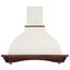 Особенно разнообразен ассортимент классических вытяжек с окантовкой из натурального дерева. Корпус таких моделей выполняется в спокойном белом или бежевом цвете, хорошо сочетающемся с оттенками натурального дерева — мореного дуба, бука, вишни или ореха. Нередко для окантовки используется окрашенное дерево в тон с цветом купола: особенно популярны оттенки ванили, бежевый и кремовый. Иногда дерево специально оставляют неокрашенным, чтобы пользователь мог подобрать оттенок самостоятельно.