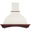 Особенно разнообразен ассортимент классических вытяжек с окантовкой из натурального дерева. Корпус таких моделей выполняется в спокойном белом или бежевом цвете, хорошо сочетающемся с оттенками натурального дерева — мореного дуба, бука, вишни или ореха. Нередко для окантовки используется окрашенное дерево в тон с цветом купола: особенно популярны оттенки ванили, бежевый и кремовый. Иногда дерево специально оставляют неокрашенным, чтобы пользователь мог подобрать оттенок самостоятельно.