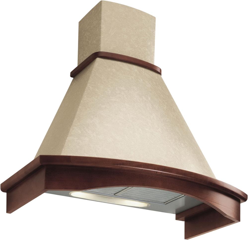 Особенно разнообразен ассортимент классических вытяжек с окантовкой из натурального дерева. Корпус таких моделей выполняется в спокойном белом или бежевом цвете, хорошо сочетающемся с оттенками натурального дерева — мореного дуба, бука, вишни или ореха. Нередко для окантовки используется окрашенное дерево в тон с цветом купола: особенно популярны оттенки ванили, бежевый и кремовый. Иногда дерево специально оставляют неокрашенным, чтобы пользователь мог подобрать оттенок самостоятельно.