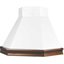 Особенно разнообразен ассортимент классических вытяжек с окантовкой из натурального дерева. Корпус таких моделей выполняется в спокойном белом или бежевом цвете, хорошо сочетающемся с оттенками натурального дерева — мореного дуба, бука, вишни или ореха. Нередко для окантовки используется окрашенное дерево в тон с цветом купола: особенно популярны оттенки ванили, бежевый и кремовый. Иногда дерево специально оставляют неокрашенным, чтобы пользователь мог подобрать оттенок самостоятельно.