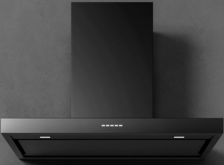 Т-образный дизайн распространен среди производителей премиальных и бюджетных вытяжек. Его легко реализовать, такая модель впишется в большинство кухонь и гарантировано покроет все рабочее пространство над варочной панелью. Часто выполняется из нержавеющей стали и используется в лофтах, также есть варианты с фронтальной панелью из стекла.