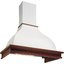 Особенно разнообразен ассортимент классических вытяжек с окантовкой из натурального дерева. Корпус таких моделей выполняется в спокойном белом или бежевом цвете, хорошо сочетающемся с оттенками натурального дерева — мореного дуба, бука, вишни или ореха. Нередко для окантовки используется окрашенное дерево в тон с цветом купола: особенно популярны оттенки ванили, бежевый и кремовый. Иногда дерево специально оставляют неокрашенным, чтобы пользователь мог подобрать оттенок самостоятельно.