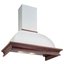 Особенно разнообразен ассортимент классических вытяжек с окантовкой из натурального дерева. Корпус таких моделей выполняется в спокойном белом или бежевом цвете, хорошо сочетающемся с оттенками натурального дерева — мореного дуба, бука, вишни или ореха. Нередко для окантовки используется окрашенное дерево в тон с цветом купола: особенно популярны оттенки ванили, бежевый и кремовый. Иногда дерево специально оставляют неокрашенным, чтобы пользователь мог подобрать оттенок самостоятельно.