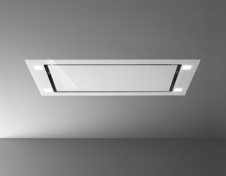 Вытяжка, встраиваемая в потолок, часто устанавливается над кухонным островом в просторной кухне и отличается достаточно высокой мощностью: она может работать как в режиме рециркуляции, так и в режиме отвода, так как воздуховод также скрыт в потолке. Вытяжки могут монтироваться в подвесной потолок либо устанавливаться в специальные многоярусные конструкции из гипсокартона непосредственно во время ремонта кухни. Для управления ими используется пульт ДУ.