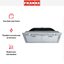 У многих встраиваемых моделей глубина может регулироваться, а рабочая всасывающая поверхность — увеличиваться благодаря выдвижному козырьку, но габариты корпуса такой вытяжки должны соответствовать размерам подвесного шкафа. Выбирать основные размеры вытяжки с соблюдением всех требований эффективности и безопасности работы следует также не в ущерб общему дизайну помещения.