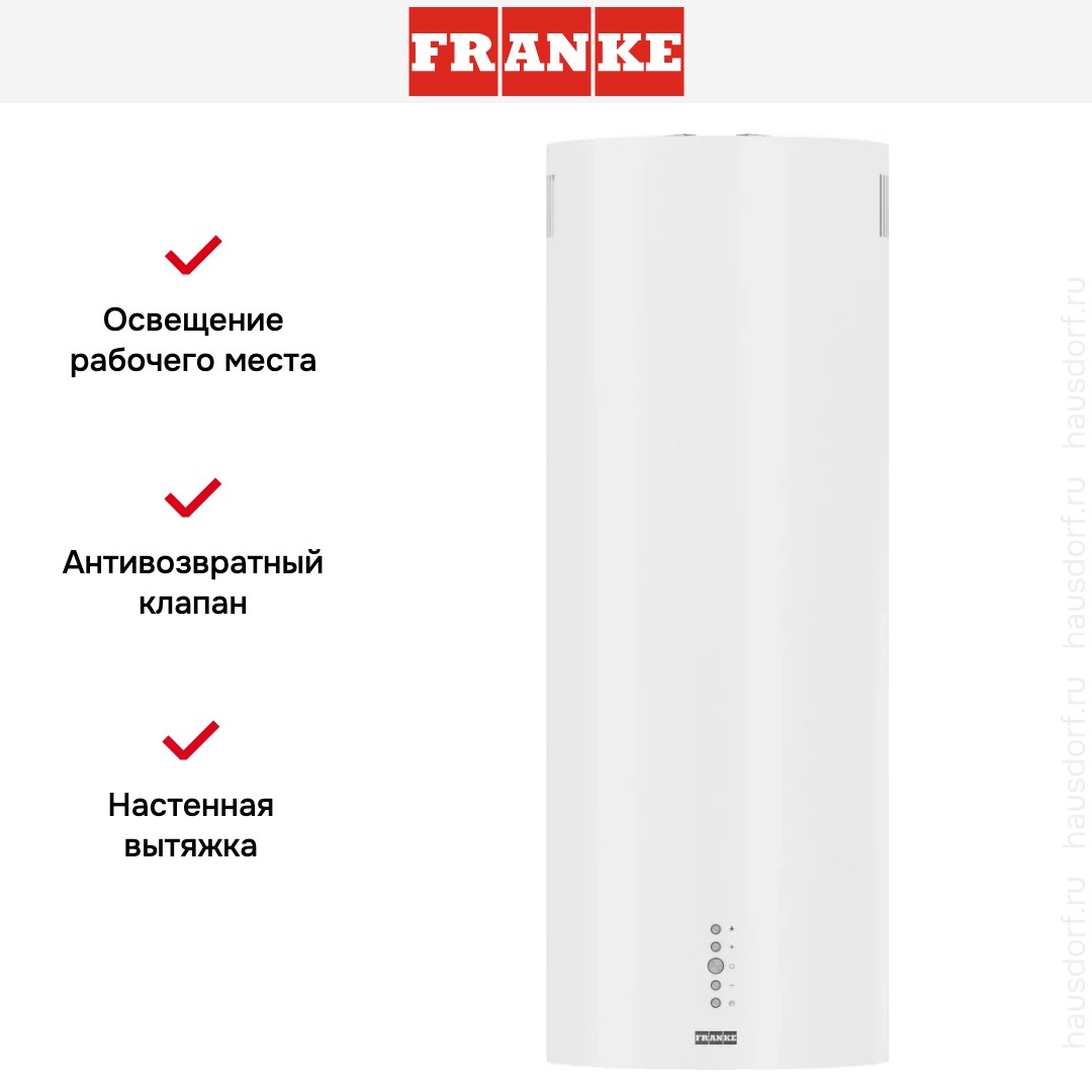 Крепление вытяжки к стене — стандартное для многих моделей, ими удобно управлять, так как кнопки находятся на расстоянии вытянутой руки. Обратите внимание на цветовые сочетания модели Franke AXIS WH 35, чтобы органично вписать ее в свою квартиру. Оттенок корпуса: белый. Благодаря лампочкам, которые расположены на нем, можно освещать плиту и столешницу рядом, чтобы готовить было еще проще и приятнее.