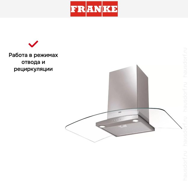 Обратите внимание на цветовые сочетания модели Franke FAR 905 XS, чтобы органично вписать ее в свою квартиру. Оттенок корпуса: нержавеющая сталь/стекло. Благодаря лампочкам, которые расположены на нем, можно освещать плиту и столешницу рядом, чтобы готовить было еще проще и приятнее.