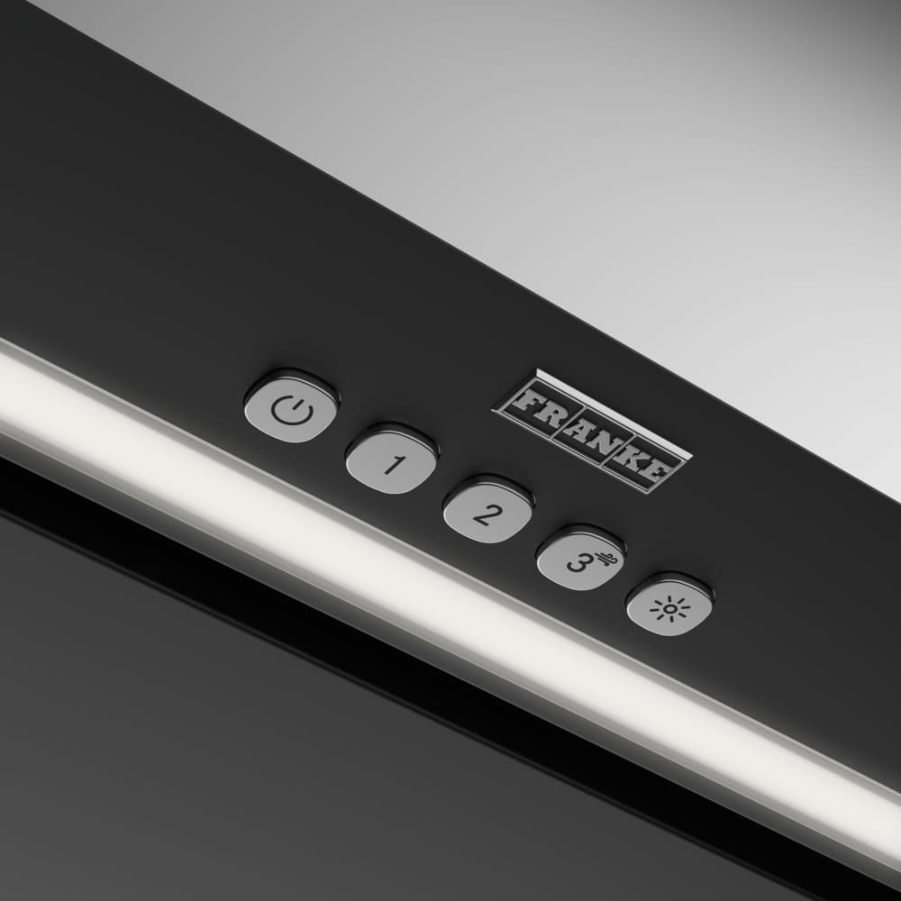 Встраиваемые и простые настенные модели, как правило, оснащаются боковой панелью управления, состоящей из нескольких кнопок. Их количество зависит от числа скоростей, наличия интенсивного режима и встроенного освещения. Боковое расположение панели управления делает вытяжку еще более незаметной.