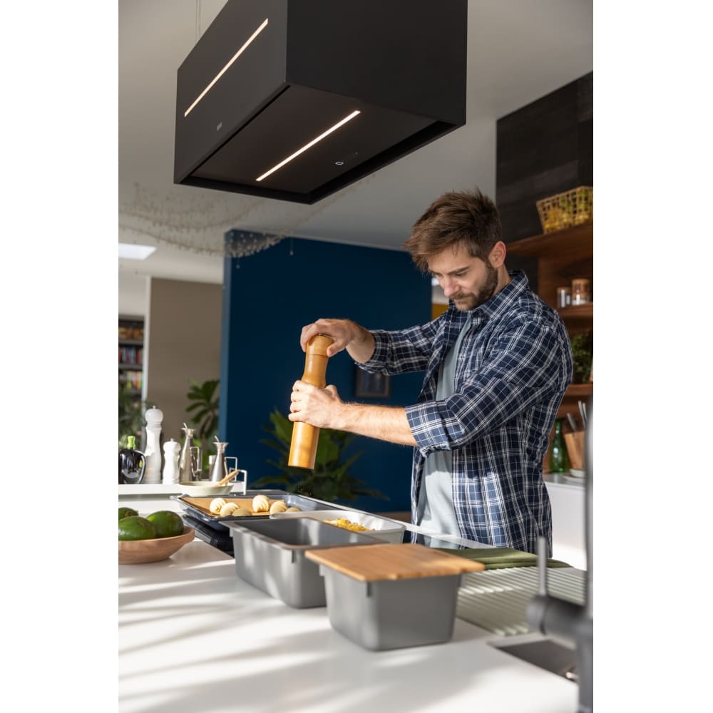 Встроенное освещение — функция, которая присутствует практически во всех современных вытяжках. Центрального освещения часто недостаточно для хорошего обзора рабочей зоны, особенно если над ней установлен подвесной шкаф. Интегрированные в вытяжку лампы позволяют готовить с комфортом, не напрягая зрение, их можно включать независимо от использования самой вытяжки.