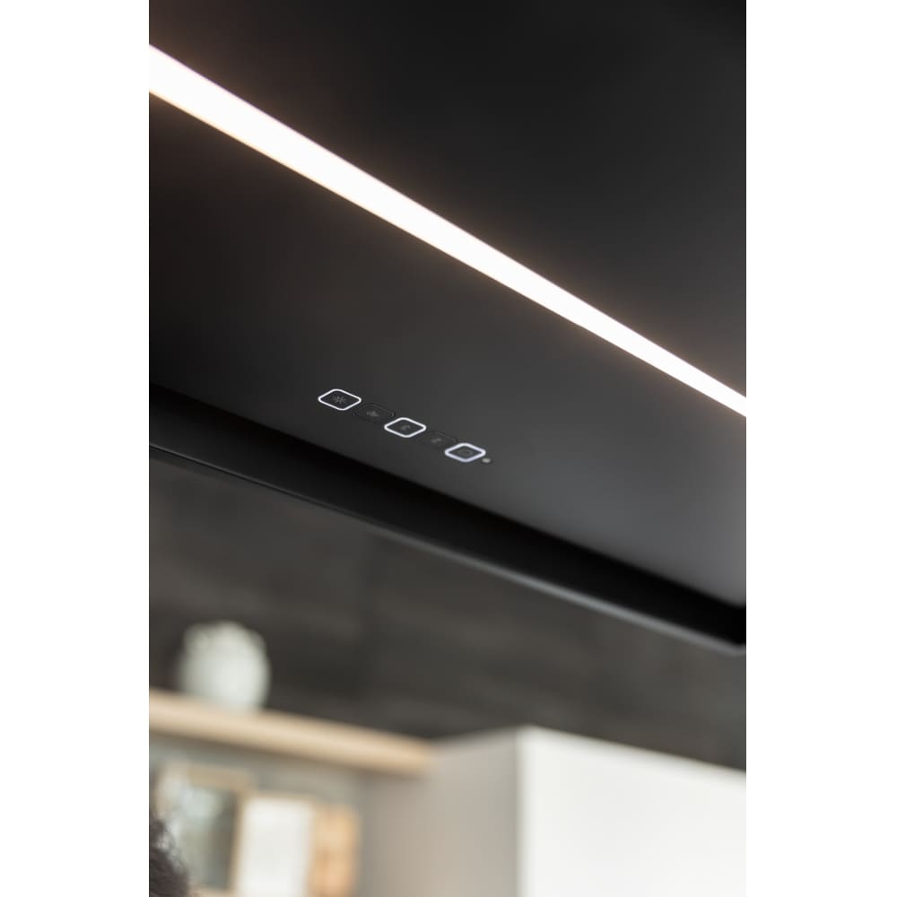 Встраиваемые и простые настенные модели, как правило, оснащаются боковой панелью управления, состоящей из нескольких кнопок. Их количество зависит от числа скоростей, наличия интенсивного режима и встроенного освещения. Боковое расположение панели управления делает вытяжку еще более незаметной.