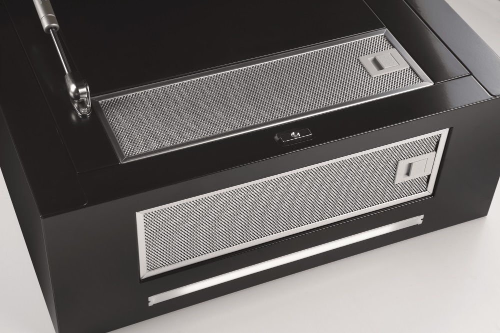 В небольших помещениях можно использовать несколько типов вытяжек. Прежде всего это экономичные, незаметные и недорогие устройства, встраиваемые в подвесной шкаф или в потолок. Нередко они оснащаются выдвижными панелями, увеличивающими площадь всасывания. Еще один тип встраиваемых устройств — со встройкой в столешницу рядом с варочной панелью. Эти производительные приборы хороши тем, что в нерабочем состоянии полностью скрыты от глаз.