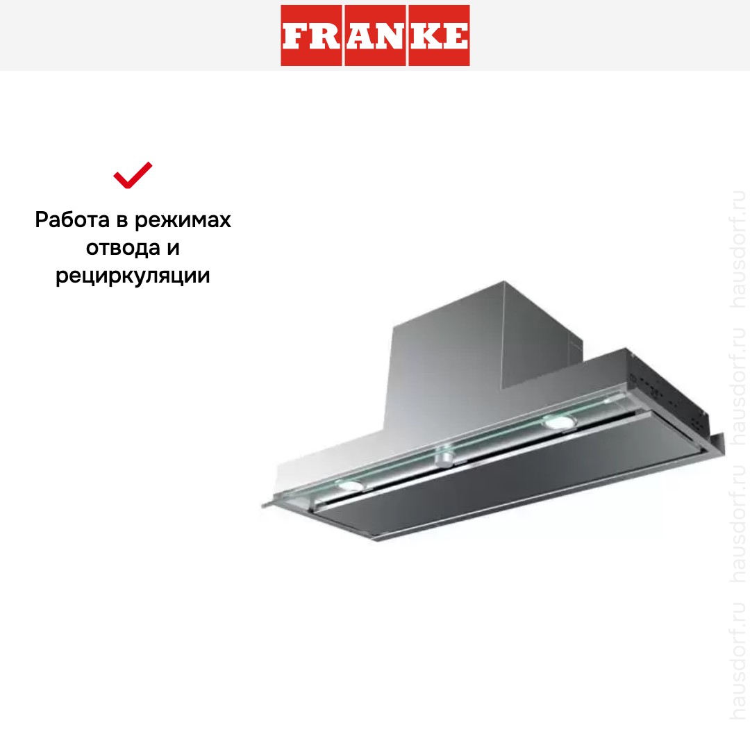 Встраиваемая вытяжка — выбор тех, кто хочет максимально задекорировать технику, или владельцев маленькой кухни. Тип встраивания: в шкаф. Обратите внимание на цветовые сочетания модели Franke FSTPRO 908, чтобы органично вписать ее в свою квартиру. Оттенок корпуса: нержавеющая сталь. Благодаря лампочкам, которые расположены на нем, можно освещать плиту и столешницу рядом, чтобы готовить было еще проще и приятнее.