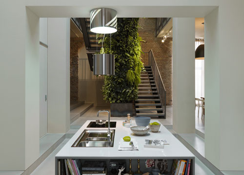 Островные модели устанавливаются на потолок над кухонным островом, которым часто оснащаются просторные кухни-столовые в современных квартирах. Подключение таких приборов к вентиляции требует больших трудозатрат, так что часть из них работает только в режиме рециркуляции. Для работы в режиме отвода воздуховод должен располагаться вертикально, что позволяет создавать оригинальные конструкции, которые станут заметной деталью в любой кухне.