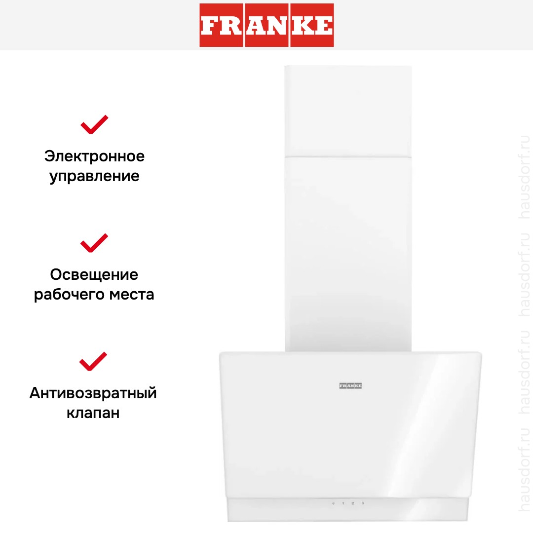 Данная вытяжка крепится на стену и имеет наклонную фронтальную панель, что придает изюминку дизайну и позволяет сохранить свободное рабочее пространство внизу. Обратите внимание на цветовые сочетания модели Franke TEMPER 50 WH, чтобы органично вписать ее в свою квартиру. Оттенок корпуса: белый. Благодаря лампочкам, которые расположены на нем, можно освещать плиту и столешницу рядом, чтобы готовить было еще проще и приятнее.