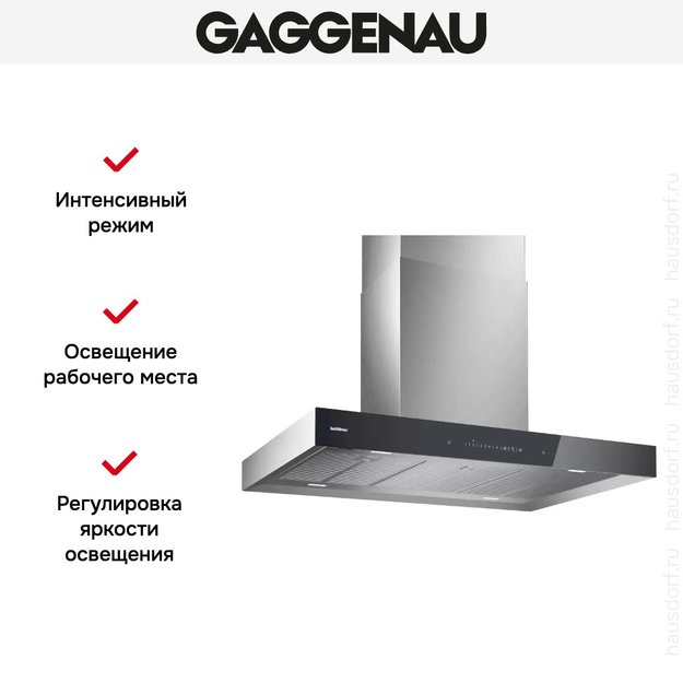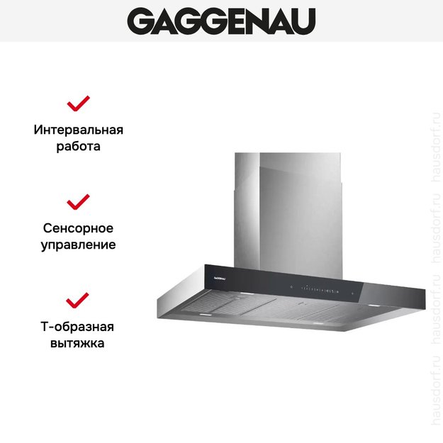 Вытяжка Гаггенау из серии 200 изготовлена из нержавеющей стали, уместной в современных интерьерах. Электронное сенсорное управление на фронтальной части позволяет выбирать скорость всасывания от первой до третьей, включать интенсивный режим, если воздух слишком задымлен, а также подсветку с диммером (регулировкой яркости). Отдельные кнопки служат для активации интервального режима с включением на 10 минут каждый час, автоматического режима с подбором скорости в зависимости от состояния воздуха в кухне. Вытяжку можно подключить к беспроводной сети и управлять ею со смартфона или связать с варочной панелью для совместной работы.