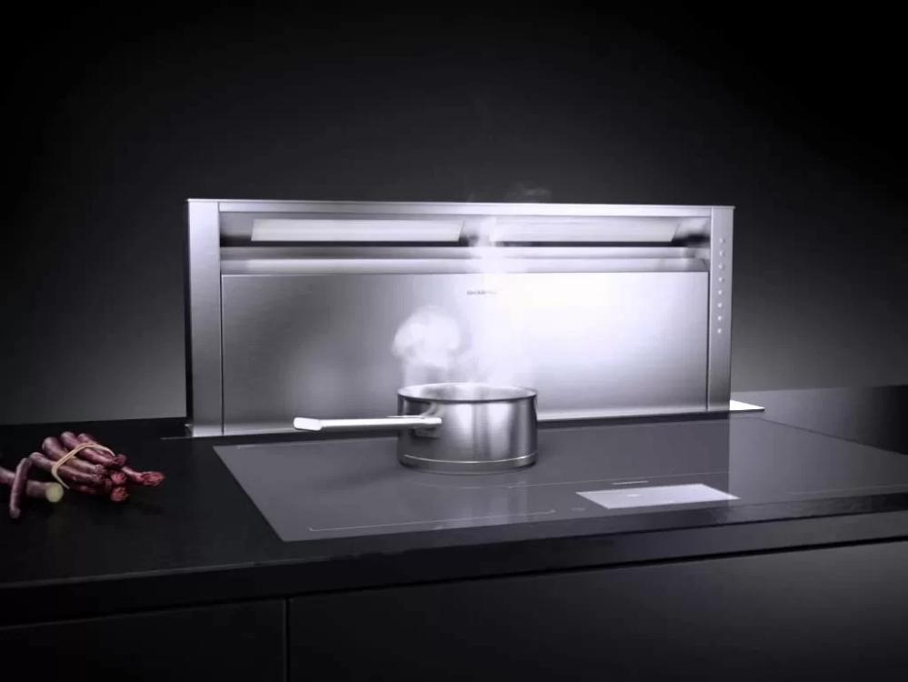 Выдвижная вытяжка комбинируется со всеми варочными панелями Gaggenau. При необходимости полностью утапливаемая в столешницу.
