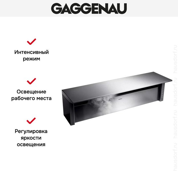Вытяжка Гаггенау работает как в режиме отвода воздуха, так и в режиме рециркуляции с использованием угольных фильтров. Усовершенствованный способ удаления загрязнений предусматривает всасывание испарений сразу у варочной панели, сбор капель жира в жироулавливающем центробежном фильтре и попадание их в специальный поддон. Второй фильтр тонкой очистки собирает оставшиеся мелкие частицы жира, а воздух затем проходит сквозь угольный фильтр, нейтрализующий запахи.