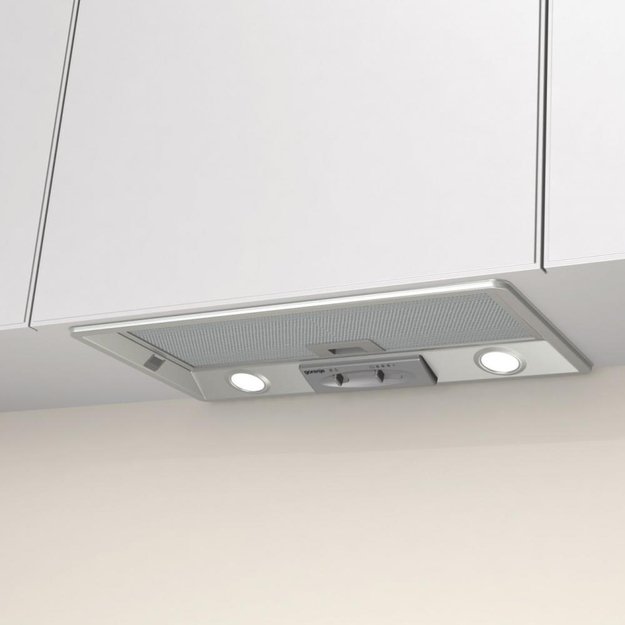 Встраиваемая вытяжка — выбор тех, кто хочет максимально задекорировать технику, или владельцев маленькой кухни. Тип встраивания: в шкаф. Обратите внимание на цветовые сочетания модели Gorenje BHI611AS, чтобы органично вписать ее в свою квартиру. Оттенок корпуса: серебристый. Благодаря лампочкам, которые расположены на нем, можно освещать плиту и столешницу рядом, чтобы готовить было еще проще и приятнее.