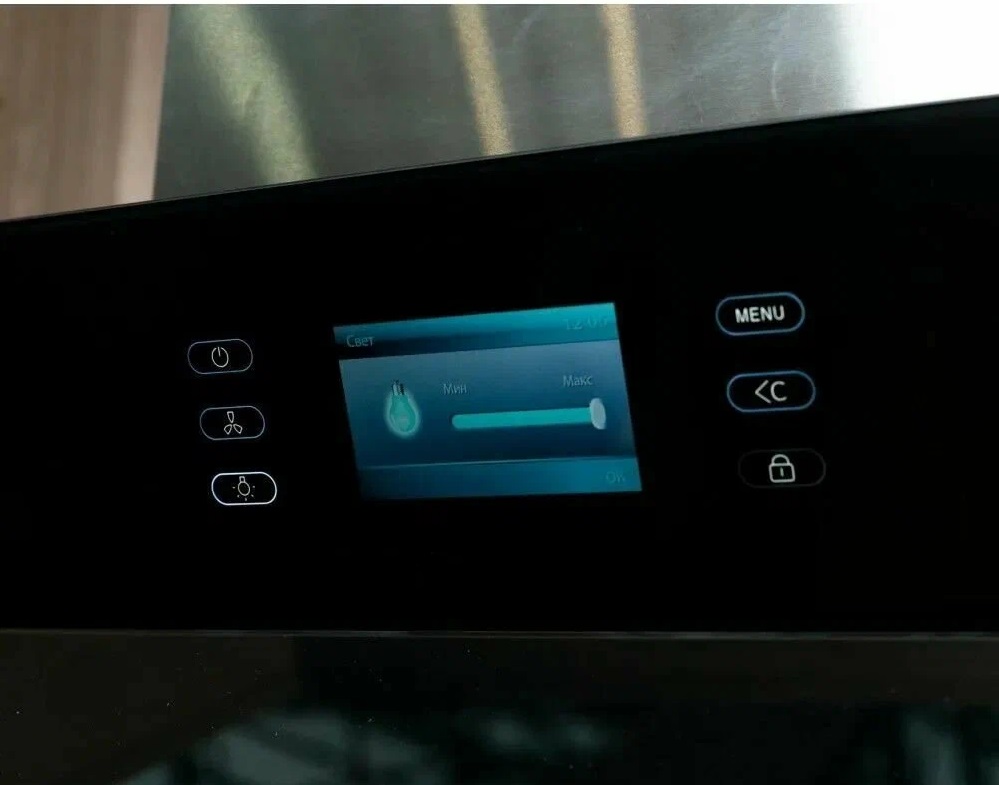 Сенсорная панель управления с дисплеем — наиболее современный и эффективный тип управления. Ей не оснащаются только модели в стиле ретро, поскольку сенсорное управление не подходит к их дизайну, и самые бюджетные модели настенных вытяжек. Все функции активируются одним прикосновением к сенсорной кнопке или движением пальца по сенсорному слайдеру. Гладкая панель стильно выглядит и очень удобна в очистке. На ней могут располагаться кнопки для активации дополнительных опций.