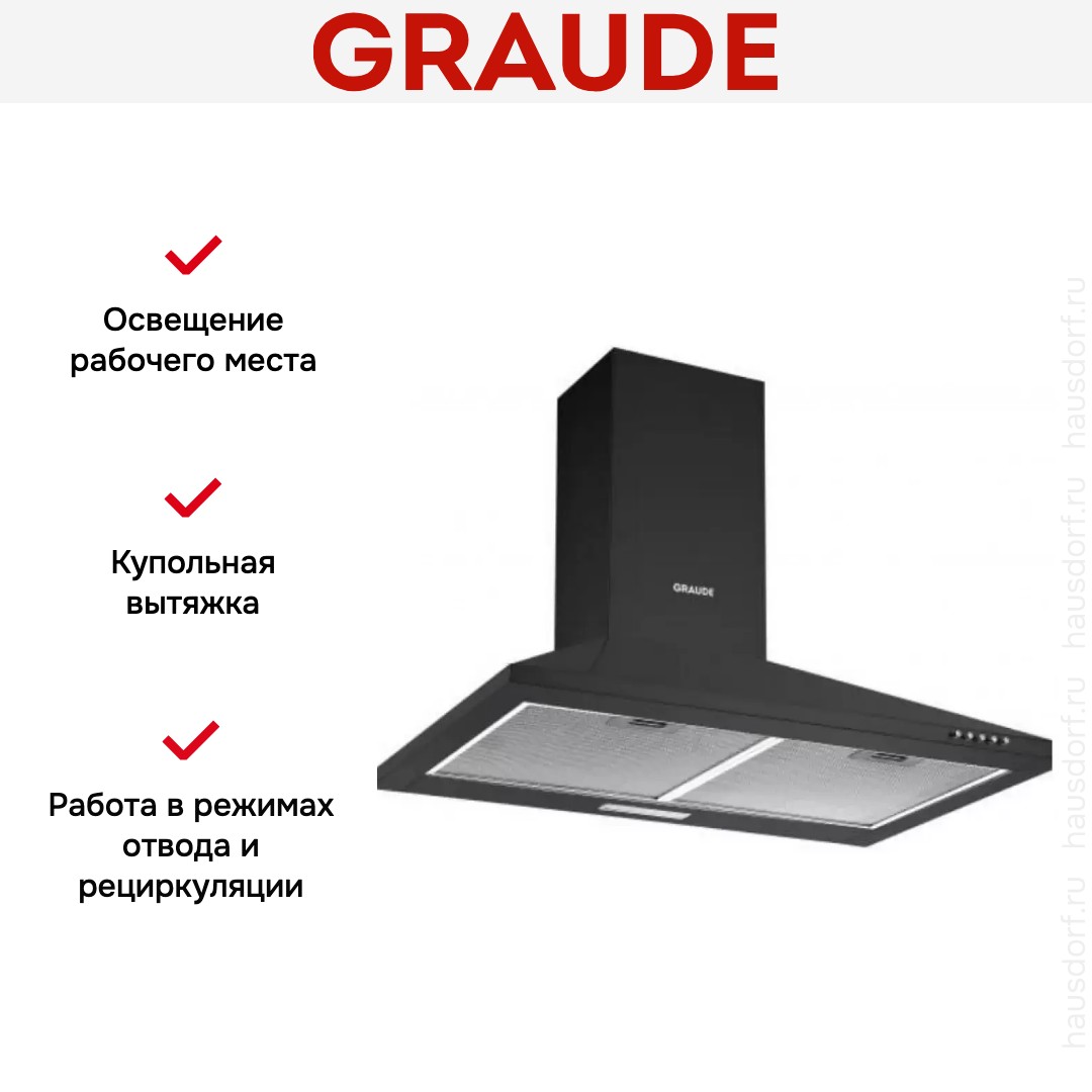 Вытяжка Graude DHP 60.0 S классической купольной формы представлена в глубоком черном цвете, что делает ее не только подходящей для интерьера любой современной кухни, но и его заметной стильной деталью.