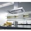 Воздух всасывается по периметру вытяжки через узкие щели. Он собирается в потоки, которые направляются прямо к фильтрам внутри, не рассеивается на кухне. Благодаря этой технологией вытяжку можно сделать компактнее и энергоэффективнее.