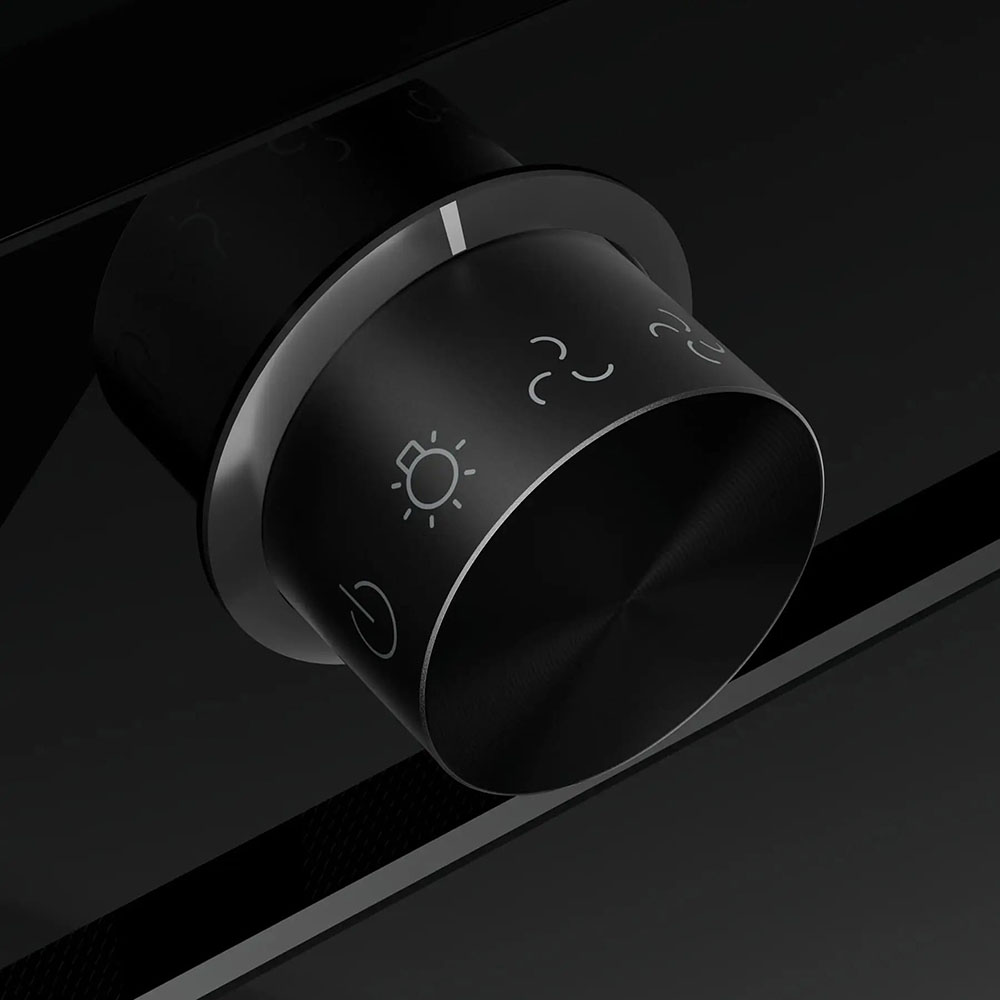 Часто кнопки или слайдеры находятся на фронтальной части устройства с правой стороны, чтобы их было удобнее переключать правой рукой и бывают скрыты выдвижным экраном. В больших купольных моделях кнопки специально выполняются так, чтобы бросаться в глаза: это заметная часть отделки устройства. Так, медные или латунные кнопки на светлом фасаде подчеркивают классический дизайн вытяжки и гармонируют с окантовкой из металла или натурального дерева. В таких моделях обычные кнопки или слайдеры могут заменяться более стильными поворотными переключателями.