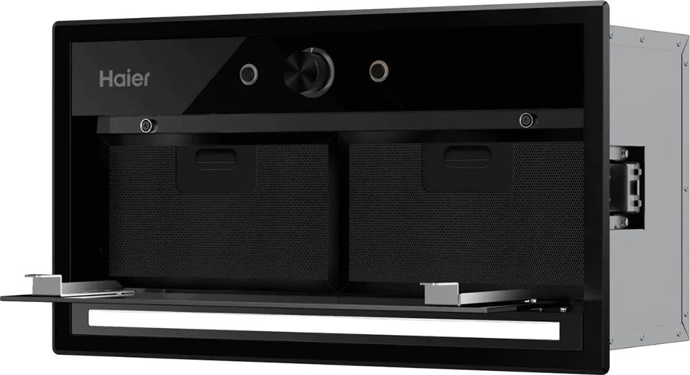 Встраиваемая вытяжка — выбор тех, кто хочет максимально задекорировать технику, или владельцев маленькой кухни. Тип встраивания: в шкаф. Обратите внимание на цветовые сочетания модели Haier HVQ-B4535B, чтобы органично вписать ее в свою квартиру. Оттенок корпуса: черный.
