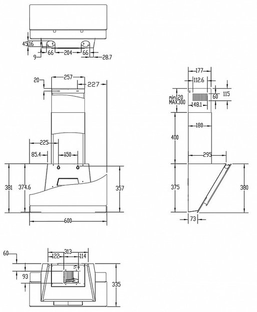 Встраиваемые и простые настенные модели, как правило, оснащаются боковой панелью управления, состоящей из нескольких кнопок. Их количество зависит от числа скоростей, наличия интенсивного режима и встроенного освещения. Боковое расположение панели управления делает вытяжку еще более незаметной.