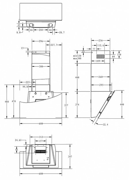 У многих встраиваемых моделей глубина может регулироваться, а рабочая всасывающая поверхность — увеличиваться благодаря выдвижному козырьку, но габариты корпуса такой вытяжки должны соответствовать размерам подвесного шкафа. Выбирать основные размеры вытяжки с соблюдением всех требований эффективности и безопасности работы следует также не в ущерб общему дизайну помещения.