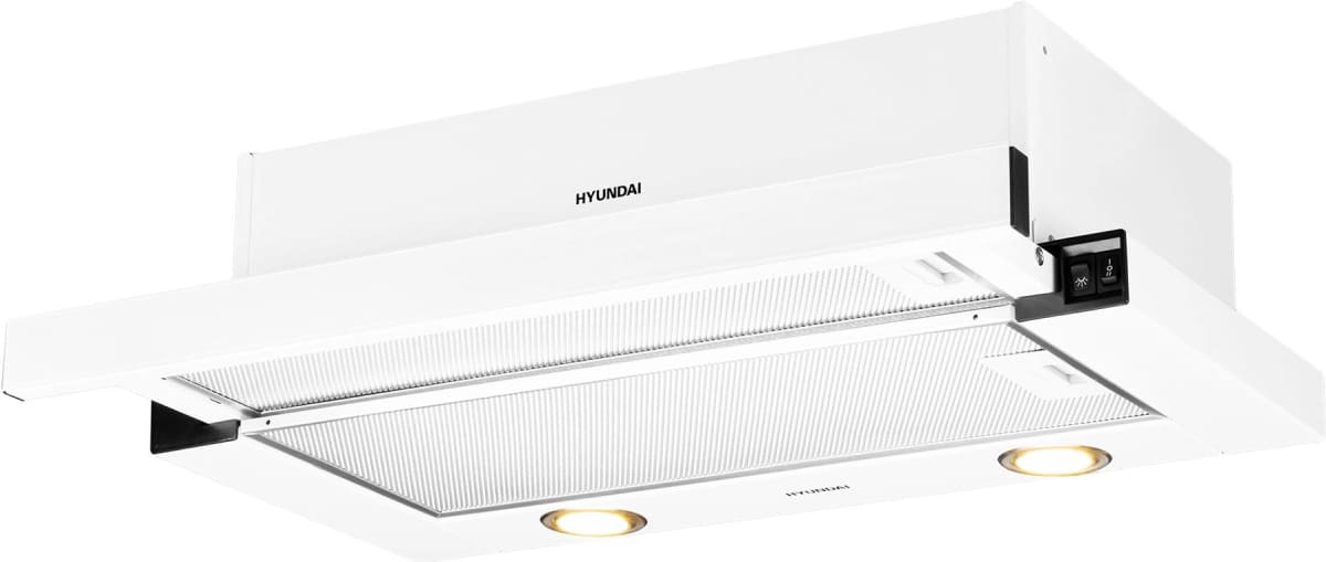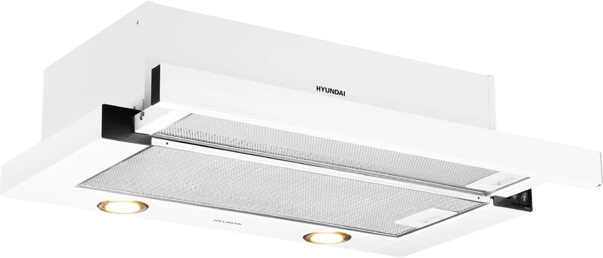 Встраиваемая вытяжка — выбор тех, кто хочет максимально задекорировать технику, или владельцев маленькой кухни. Тип встраивания: в шкаф. Обратите внимание на цветовые сочетания модели Hyundai HBH 6236 WG, чтобы органично вписать ее в свою квартиру. Оттенок корпуса: белый. Благодаря лампочкам, которые расположены на нем, можно освещать плиту и столешницу рядом, чтобы готовить было еще проще и приятнее. Фишка этой техники — выдвижная панель.