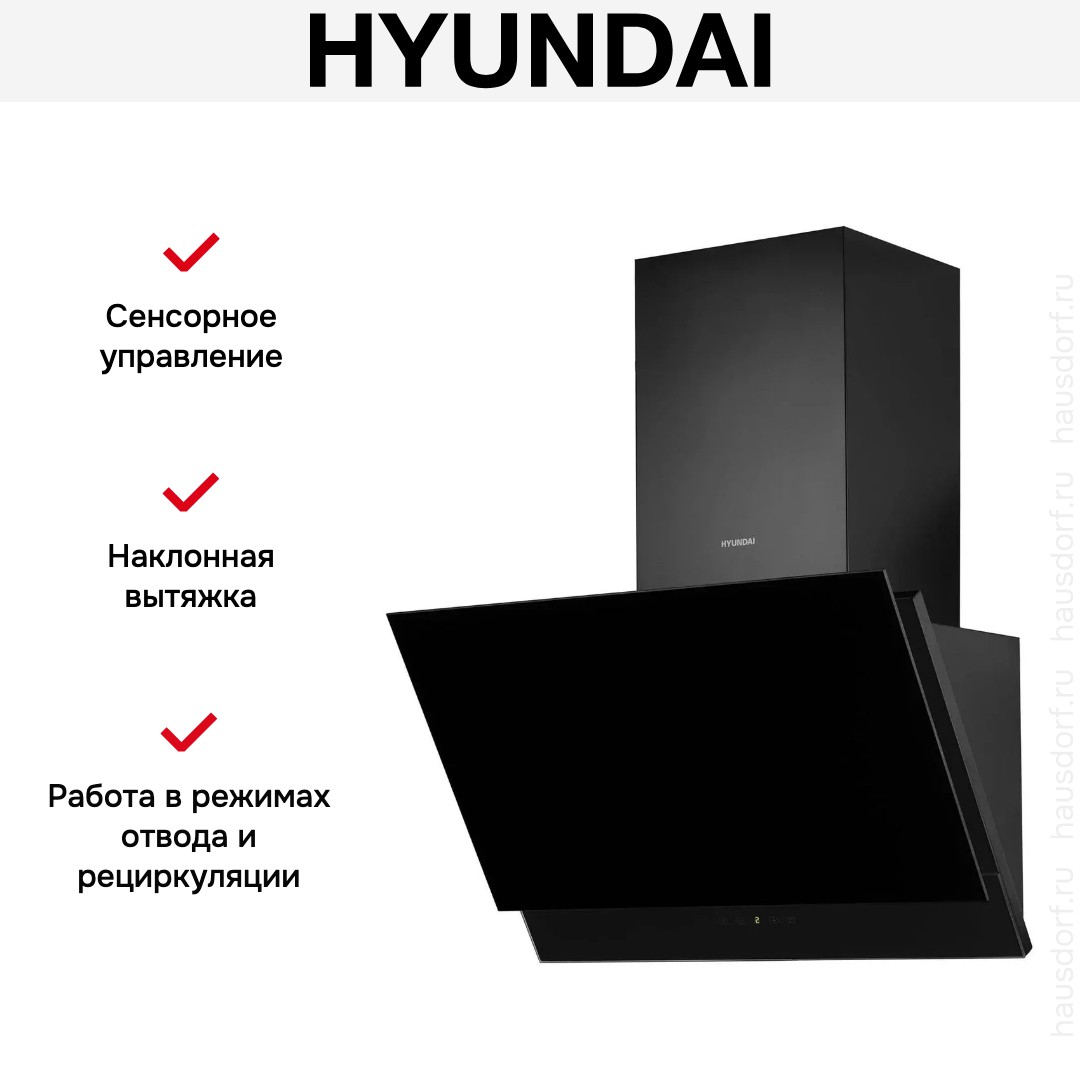 Наклонная вытяжка Hyundai HGH-6744-BG оснащена стильным черным стеклянным экраном и окрашенной стальной конструкцией. Ее геометрия с наклонной панелью делает прибор заметным элементом кухни и одновременно освобождает пространство над рабочей зоной. Черный цвет добавляет глубины интерьеру и легко сочетается с бытовой техникой разных тонов. Стеклянный экран выглядит современно и обеспечивает приятный визуальный акцент при минималистском оформлении.