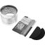 Фурнитура из нержавеющей стали — принадлежность вытяжек современного дизайна: наклонных, островных, потолочных. Панели, декоративные фильтры и решетки хорошо сочетаются со стеклом всех оттенков, а также натуральным камнем.