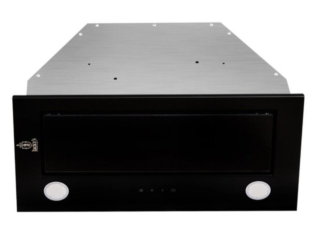Вытяжка устанавливается в шкаф или в потолочную нишу — таким образом все соединительные элементы и корпус оказываются скрыты. Это подходящий вариант для небольшого помещения, если нужно максимально освободить пространство, а также необходимость, если вы продумываете кухонный дизайн до мелочей.