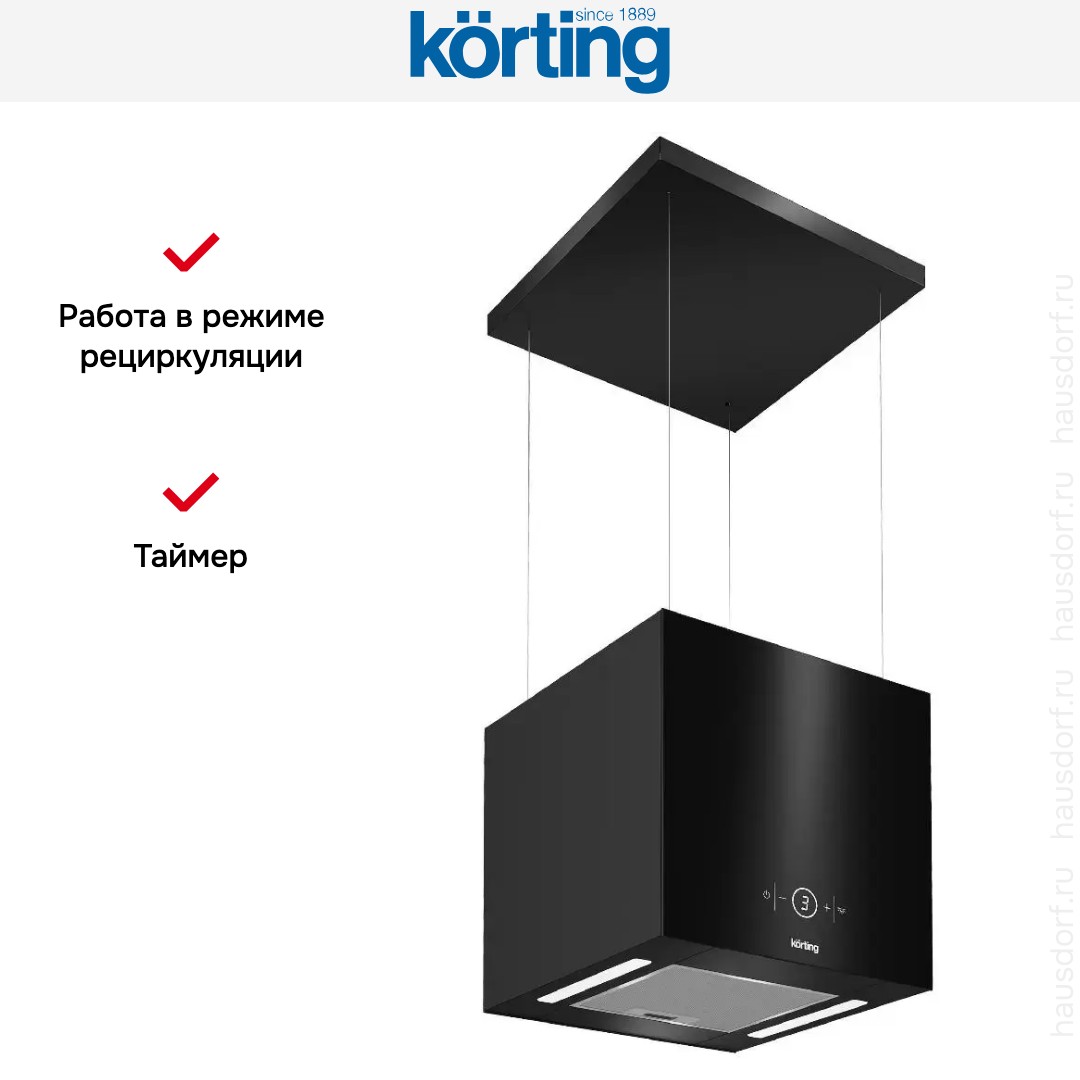 Данная вытяжка выглядит изящной и невесомой за счет свободного пространства между креплением и основным корпусом. Обратите внимание на цветовые сочетания модели Korting KHA 40828 GN, чтобы органично вписать ее в свою квартиру. Оттенок корпуса: черное стекло. Благодаря лампочкам, которые расположены на нем, можно освещать плиту и столешницу рядом, чтобы готовить было еще проще и приятнее.