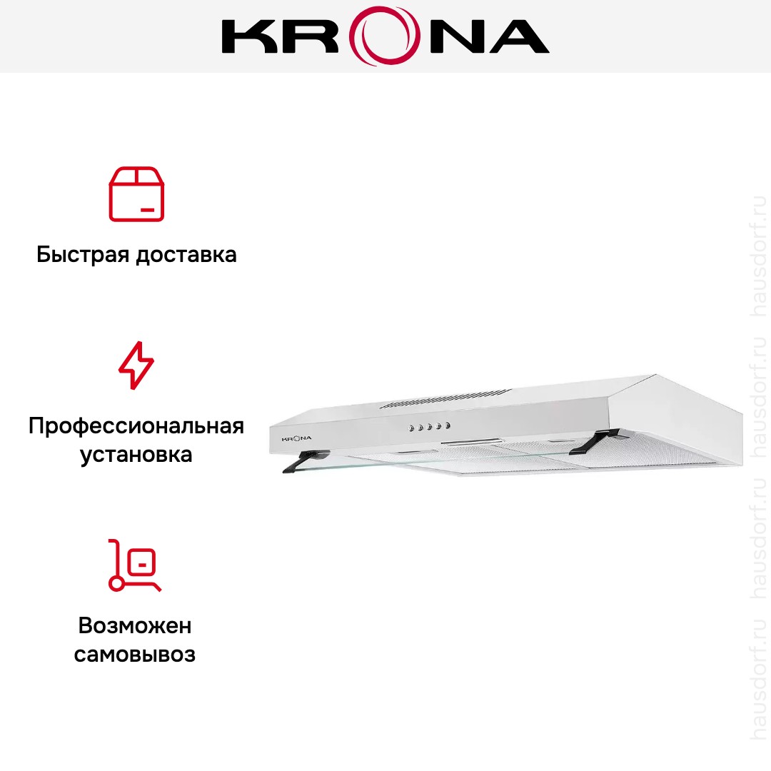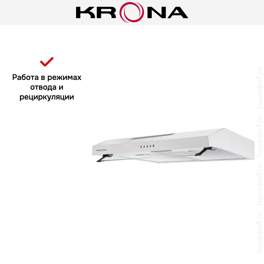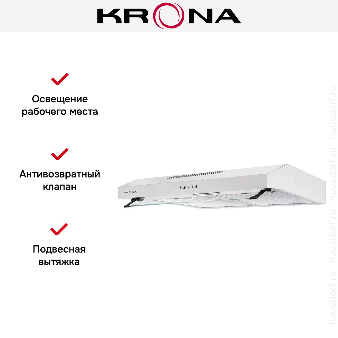 Данная вытяжка выглядит изящной и невесомой за счет свободного пространства между креплением и основным корпусом. Обратите внимание на цветовые сочетания модели KRONA EMMA 600 white PB, чтобы органично вписать ее в свою квартиру. Оттенок корпуса: белый. Благодаря лампочкам, которые расположены на нем, можно освещать плиту и столешницу рядом, чтобы готовить было еще проще и приятнее.
