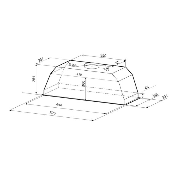 Глубина вытяжки — не менее важная характеристика для выбора модели, чем ее ширина, поскольку от нее также зависит площадь рабочей втягивающей поверхности. Чем лучше площадь поверхности соответствует площади варочной панели, тем эффективнее будут устраняться загрязнения воздуха, возникающие в процессе приготовления пищи — частицы сажи, капли жира, водяные испарения, а также неприятные запахи.