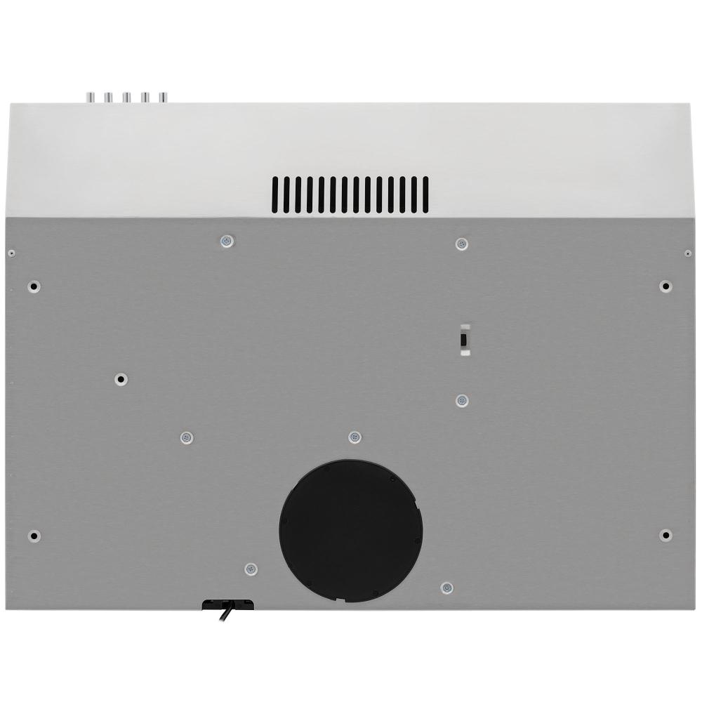 Вытяжка работает в режимах отвода и циркуляции, поэтому загрязнения удаляются из комнаты и перенаправляются в воздуховод, при этом можно очистить воздух и использовать повторно за счет возвращения его в помещение. Количество скоростей в этой модели: 3 шт. При этом максимальная производительность составляет 360 куб.м./ч. Уровень шума при полной загруженности — 69 дБ.
