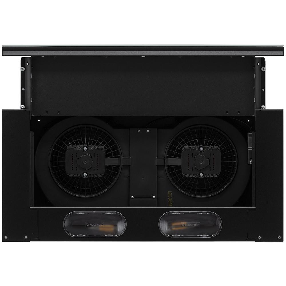 Вытяжки, встраиваемые в столешницу — эффективная инновация, которая подойдет для установки в кухне любой площади. Такие вытяжки размещаются за варочной поверхностью или рядом с ней. В отключенном состоянии всасывающая панель находится под столешницей, но после включения одной или нескольких конфорок она автоматически выдвигается при помощи специального лифтового механизма. Загрязненный воздух улавливается, не успевая распространиться по помещению. Когда вытяжка убрана, на виду остается только сенсорная панель управления. Недостатком подобных моделей является только сравнительно высокая цена.