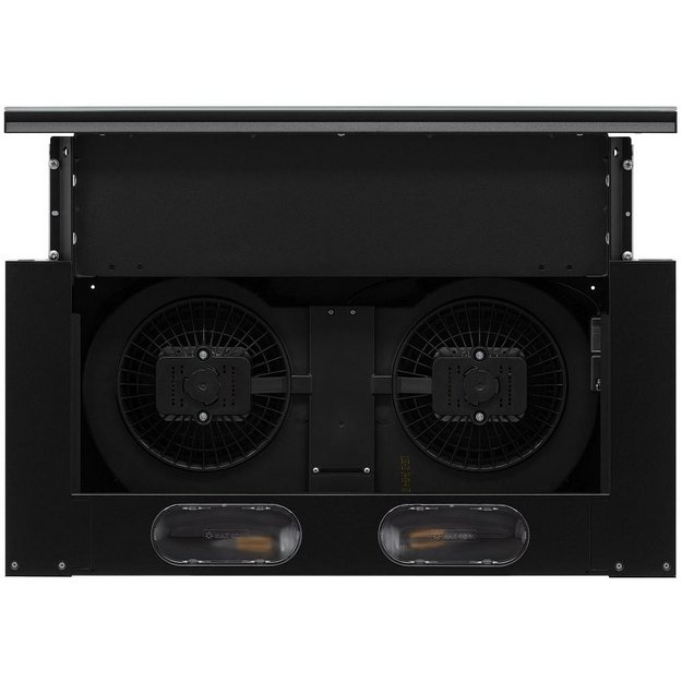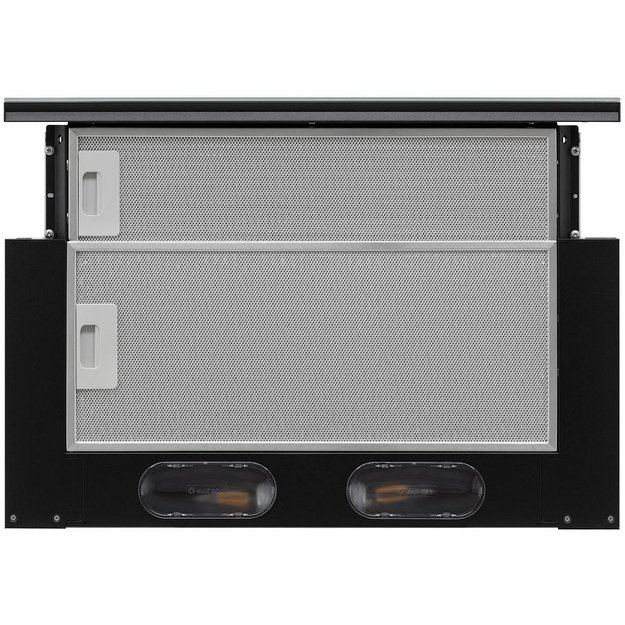 В вытяжках, интегрированных в варочную поверхность и работающих в режиме рециркуляции, панель выдвигается при включении зоны нагрева автоматически. В закрытом же состоянии видны только сенсорные управляющие элементы, которые находятся вровень с варочной поверхностью.
