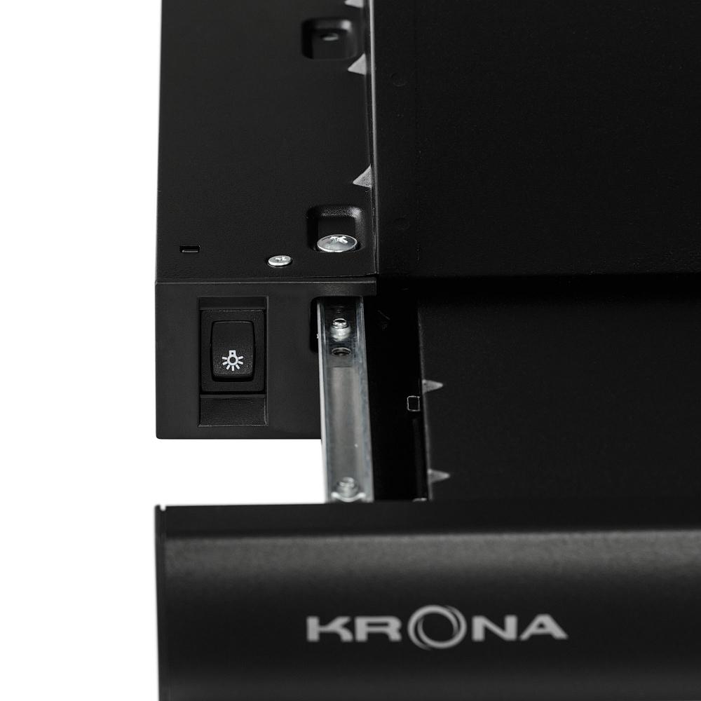 Встраиваемая вытяжка — выбор тех, кто хочет максимально задекорировать технику, или владельцев маленькой кухни. Тип встраивания: в шкаф. Обратите внимание на цветовые сочетания модели KRONA KAMILLA 600 SUPERNOVA B, чтобы органично вписать ее в свою квартиру. Оттенок корпуса: черный. Благодаря лампочкам, которые расположены на нем, можно освещать плиту и столешницу рядом, чтобы готовить было еще проще и приятнее. Фишка этой техники — выдвижная панель.