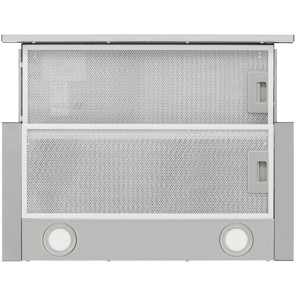 Вытяжки, встраиваемые в столешницу — эффективная инновация, которая подойдет для установки в кухне любой площади. Такие вытяжки размещаются за варочной поверхностью или рядом с ней. В отключенном состоянии всасывающая панель находится под столешницей, но после включения одной или нескольких конфорок она автоматически выдвигается при помощи специального лифтового механизма. Загрязненный воздух улавливается, не успевая распространиться по помещению. Когда вытяжка убрана, на виду остается только сенсорная панель управления. Недостатком подобных моделей является только сравнительно высокая цена.