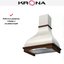 Еще один универсальный цвет — белый, он особенно хорошо подходит для небольших кухонь, так как зрительно способен расширить пространство. На белом фона меньше заметны капли воды и даже частицы жира. В классическом или античном белом выполняются купольные и каминные вытяжки, угловые и встраиваемые модели. Светлые кремовые тона, оттенок слоновой кости — наиболее распространенный вариант для больших вытяжек с окантовкой из натурального дерева.