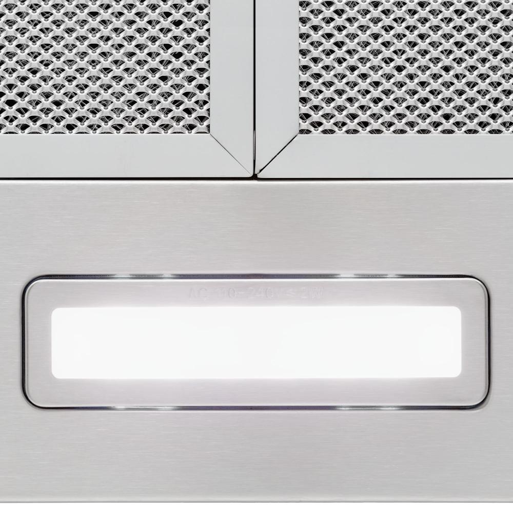 Встроенное освещение — функция, которая присутствует практически во всех современных вытяжках. Центрального освещения часто недостаточно для хорошего обзора рабочей зоны, особенно если над ней установлен подвесной шкаф. Интегрированные в вытяжку лампы позволяют готовить с комфортом, не напрягая зрение, их можно включать независимо от использования самой вытяжки.