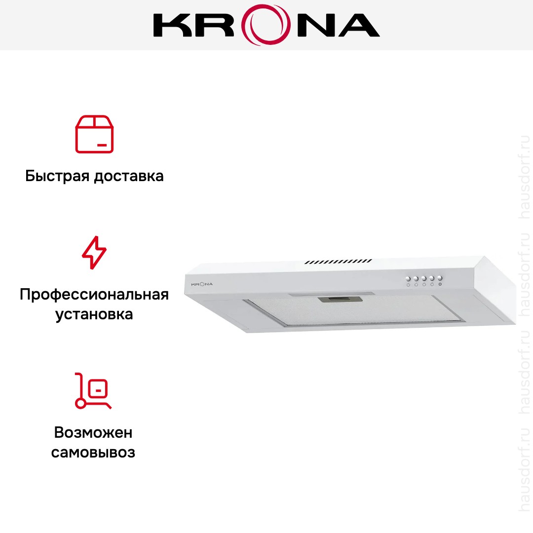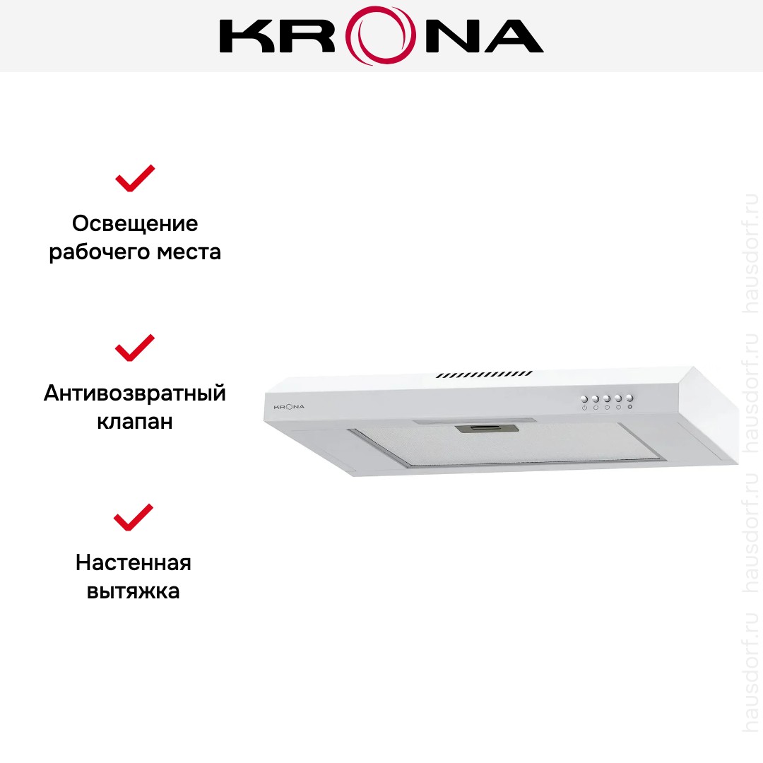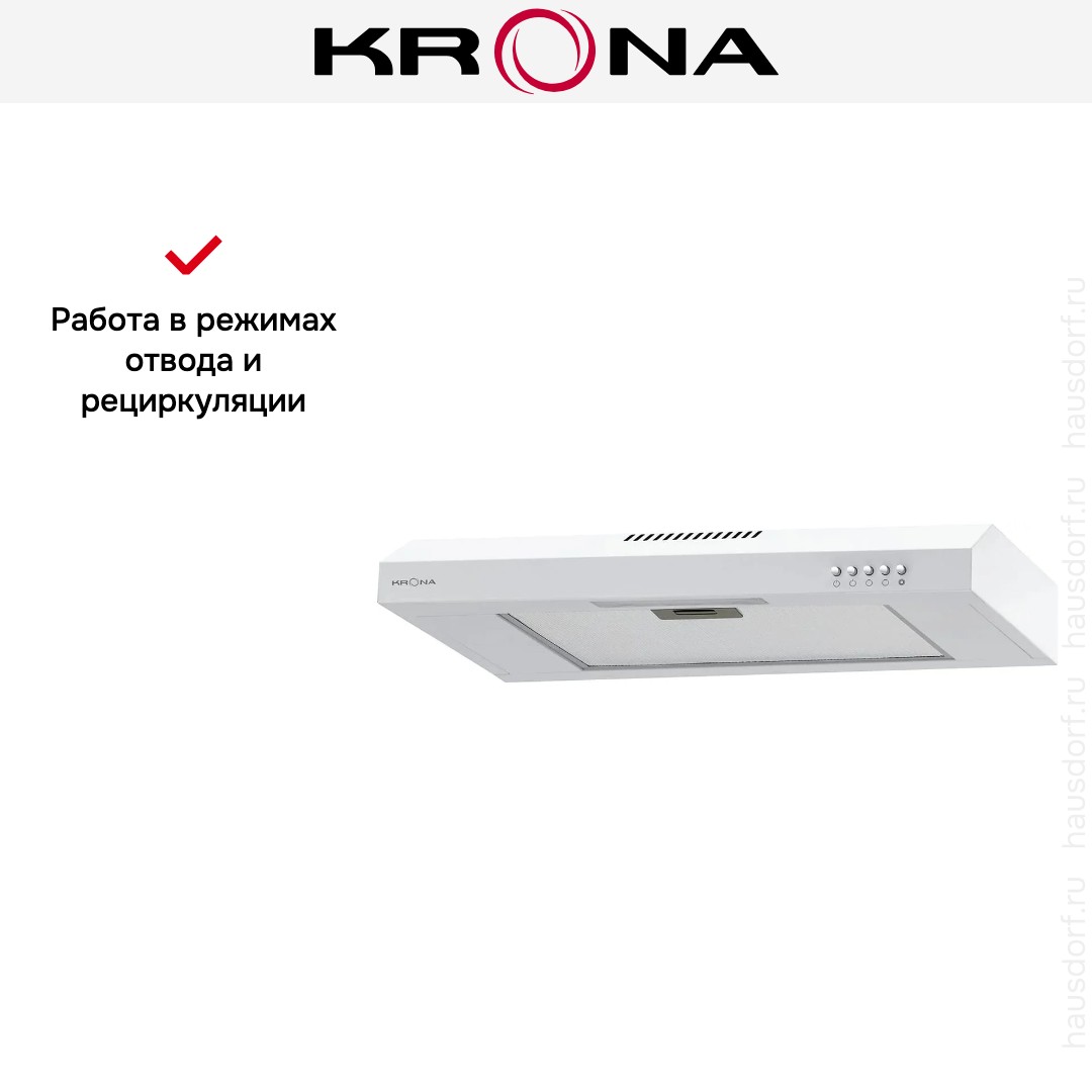 Вытяжка Krona Jillian 600 White PB — настенное решение в белом корпусе с серебристой фурнитурой и компактной высотой 8.5 см. Прибор выполнен из металла и выглядит лаконично и аккуратно. Ширина 59.5 см и глубина 44 см соответствуют стандартной кухонной мебели. Перфорированная стальная пластина над жироулавливающим фильтром добавляет строгий и современный штрих в общий образ.