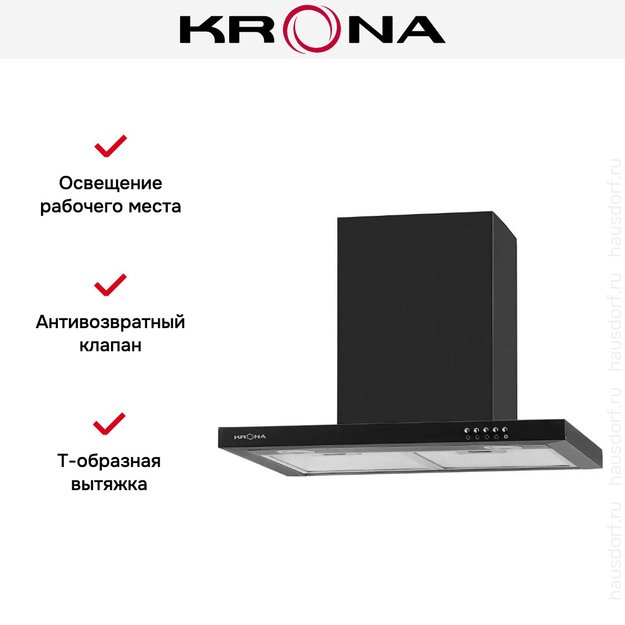 Обратите внимание на цветовые сочетания модели KRONA JOANNA 600 black PB, чтобы органично вписать ее в свою квартиру. Оттенок корпуса: черный. Благодаря лампочкам, которые расположены на нем, можно освещать плиту и столешницу рядом, чтобы готовить было еще проще и приятнее.